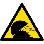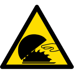 El cartel nos informa de una zona potencial de corte. Probablemente por una máquina en movimiento.