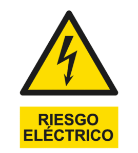 Señal / Cartel de Riesgo eléctrico. Homologada. Según UNE 81-501. PVC 0,7 mm, 2 mm. Aluminio 0,8 mm y Adhesivo. Varios tamaños.