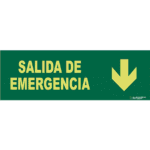 Señal / Cartel de Salida de emergencia con flecha Izquierda / Derecha / Abajo. Clase A. Luminiscente. Segun UNE-23035/4 2003. Disponible en PVC 1 mm.
