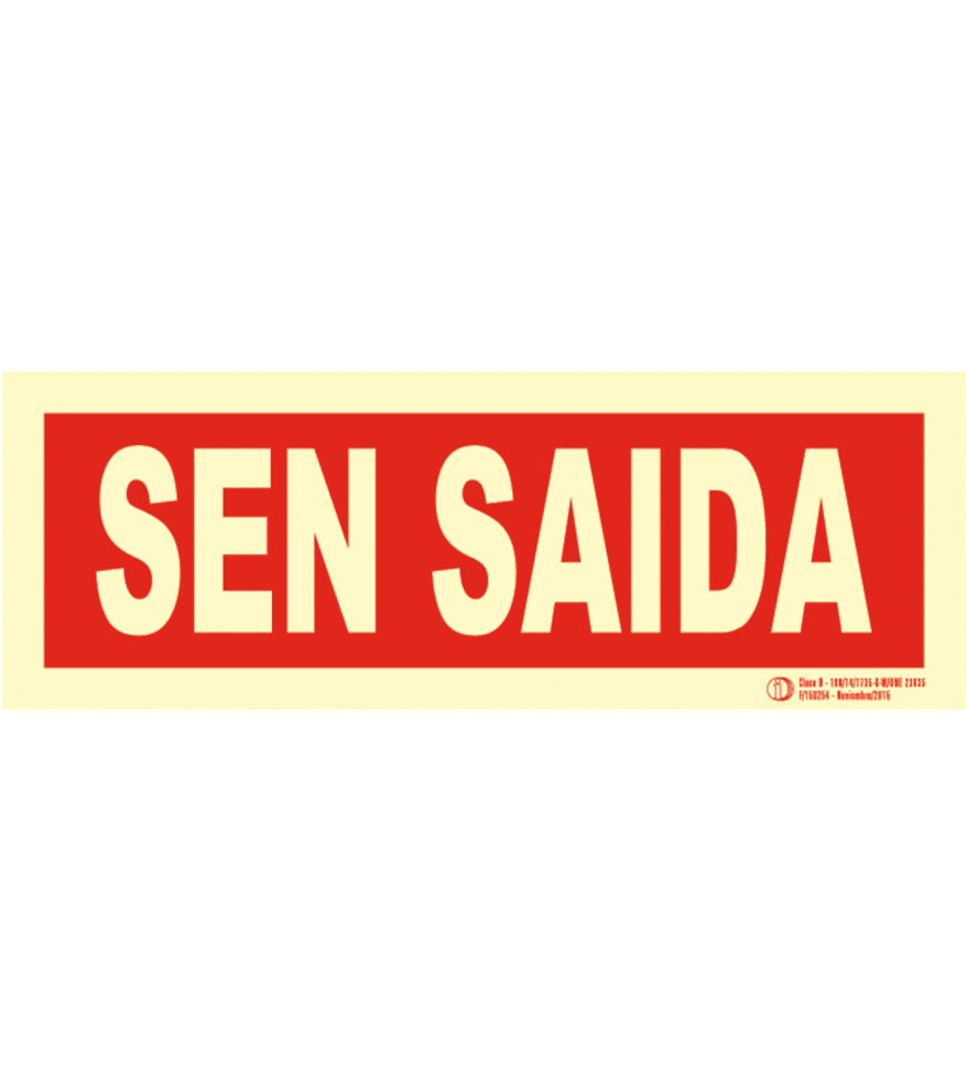 Señal / Cartel Sen saida. Monolingüe. Clase B. Luminiscente. Segun UNE-23035/4 2003. Disponible en PVC 0,8 mm y aluminio 0,8 mm