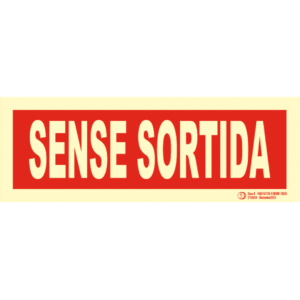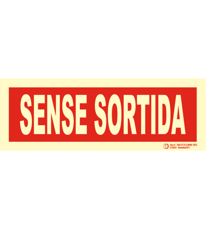 Señal / Cartel Sense sortida. Monolingüe. Clase B. Luminiscente. Segun UNE-23035/4 2003. Disponible en PVC 0,8 mm y aluminio 0,8 mm
