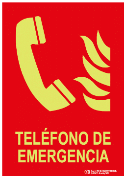 Señal / Cartel de teléfono de emergencia fotoluminiscente. Clase A. Segun UNE 23035:2003, Disponible en PVC 1 mm.