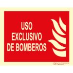 Señal de Uso exclusivo bomberos. Clase B. Luminiscente. Segun UNE 23035:2003. Disponible en PVC 0,8 mm y Aluminio 0,8 mm.