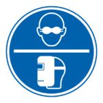 La señal de Uso obligatorio de gafas o pantalla está disponible en material Adhesivo, PVC 0,7 mm, PVC 2 mm y Aluminio 0,8 mm. También tiene varios tamaños a elegir para este mismo producto.