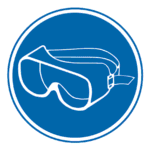 Señal / Cartel de Uso obligatorio de gafas antisalìcaduras. Homologada. Según UNE 81-501. PVC 0,7 mm, 2 mm. Aluminio 0,8 mm y Adhesivo. Varios tamaños.