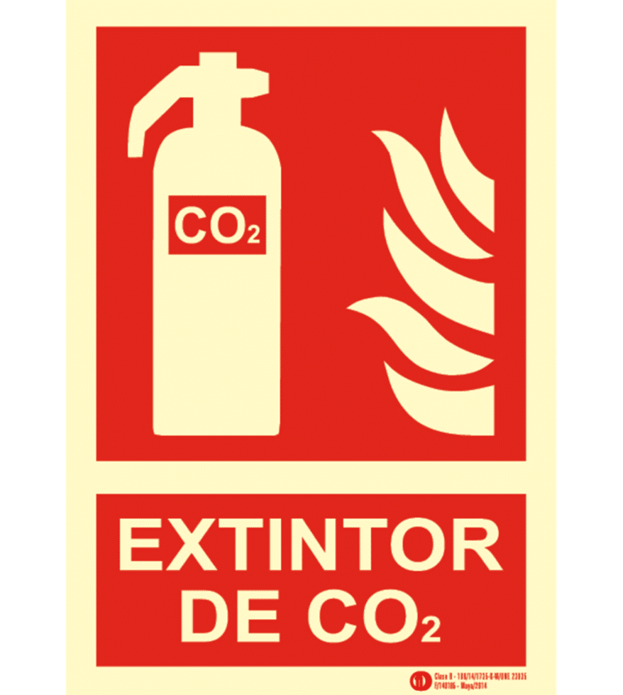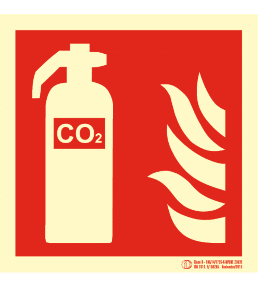 Señal de extintor co2 Clase B fotoluminiscente