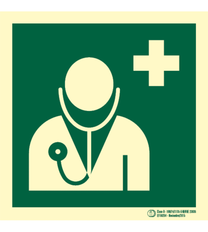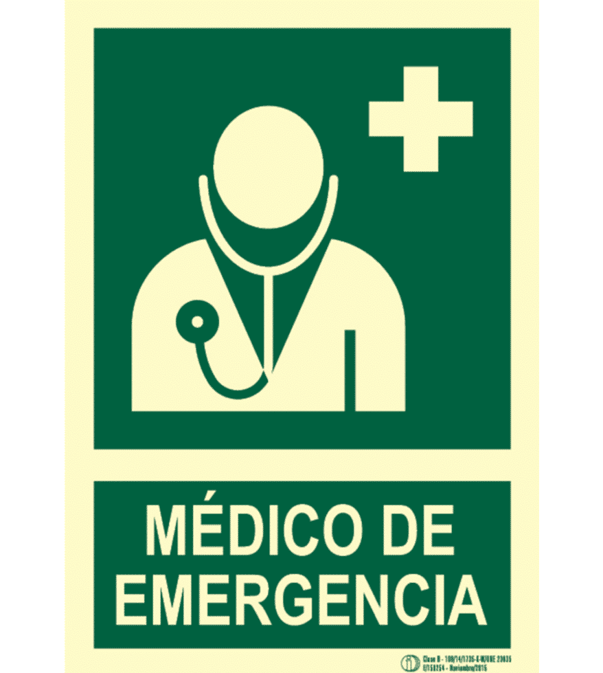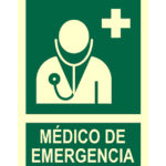 Señal / Cartel de Médico de emergencia. Clase B. Luminiscente. Segun UNE-23035/4 2003. Disponible en PVC 0,8 mm y aluminio 0,8 mm