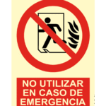 Señal de No utilizar en caso de… – No hay salida. Clase B. Luminiscente. Segun UNE 23035:2003. Disponible en PVC 0,8 mm y Aluminio 0,8 mm.