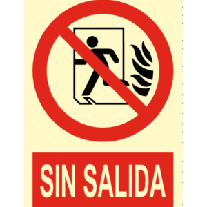 El cartel se utiliza para indicar la inexistencia de una salida en una ruta de evacuación o en una puerta que no da al exterior.