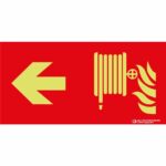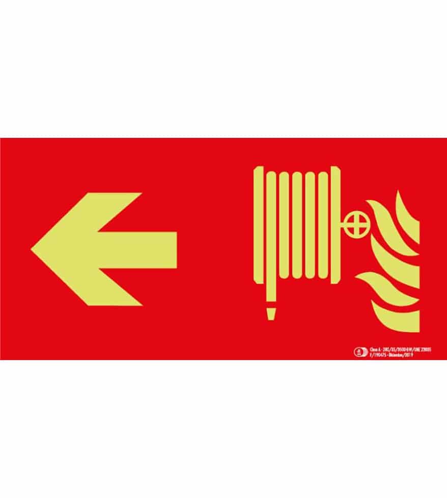 Señal de Recorridos Boca de Incenidios Equipada. Clase A. Luminiscente. Segun UNE 23033-1:2019. Disponible en PVC 1 mm, Plancha PVC luminiscente 1 mm + vinilo adhesivo y Aluminio 0,8 mm.