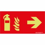 La señal de recorrido para localizar el extintor (flecha a la derecha) en Clase A está diseñada para
