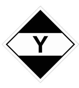 Signo convencional: rombo blanco con dos triángulos negros en sus extremos inferior y superior. En el centro de la marca deberá figurar el símbolo “Y”