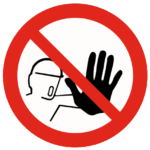 Los pictogramas de prohibición son de forma circular de color rojo y sobre un fondo blanco. El blanco cubrirá al menos el 50% de la señal y tendrá bordes rojos.