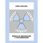 Señal de Zona vigilada / Sin texto / Riesgo irradiación / Riesgo contaminación / Riesgo irradiación y contaminación. En PCV Adhesivo. Varios tamaños.