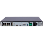 Los 8 puertos Ethernet PoE (Power over Ethernet) simplifican significativamente la instalación al alimentar directamente las cámaras IP sin necesidad de cableado eléctrico adicional. Esta característica reduce costes de instalación, facilita el despliegue en ubicaciones remotas y mejora la fiabilidad del sistema al centralizar la alimentación.