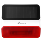 La sirena exterior inalámbrica NVS-S8A-U1 de Nivian combina potencia acústica de 100 dB con señalización luminosa mediante flash LED, especialmente diseñada para instalaciones de seguridad perimetral. Su alimentación solar con batería de respaldo garantiza autonomía continua sin necesidad de cableado eléctrico, facilitando la instalación en cualquier ubicación exterior.