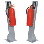 Soporte de columna para extintores de 6 y 9 kg. Permite fijar el extintor en pilares o columnas verticales cuando no hay pared disponible. Fabricación robusta en acero.
