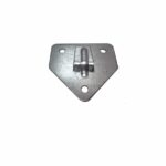 Soporte de pared para extintor de polvo 6 kg. Placa pentagonal en acero cincado galvanizado con gancho central y tres agujeros para fijación. Acabado metálico resistente.