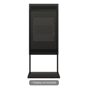 Con una altura total de 2.245 mm una vez instalado el monitor, este soporte proporciona el posicionamiento vertical ideal para maximizar la visibilidad del contenido en espacios con elevado tránsito de personas, como centros comerciales, aeropuertos, estaciones de transporte, showrooms y lobbies corporativos.