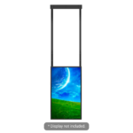 Este soporte resulta ideal para instalaciones de cartelería digital en espacios comerciales como centros comerciales, aeropuertos, estaciones de transporte, concesionarios de vehículos y grandes superficies. La instalación en techo permite aprovechar espacios donde el montaje en pared no es viable, liberando además superficie útil en el suelo y paredes.