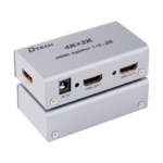 El HDMI-SPLITTER-2-4K soporta resoluciones de hasta 3840×2160 píxeles a 30Hz (4K UHD), además de formatos Full HD 1080p, 1080i, 720p y resoluciones inferiores con retrocompatibilidad total. Incorpora tecnología de amplificación de señal que permite mantener la calidad de imagen sin degradación incluso en distancias de cable considerables, aspecto crítico en instalaciones de seguridad distribuidas.