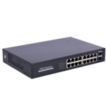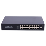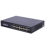 Switch PoE Gigabit no gestionable con 16 puertos RJ45 10/100/1000 Mbps y 2 puertos SFP Uplink, especialmente diseñado para instalaciones de videovigilancia IP y sistemas de seguridad profesionales. Ofrece alimentación PoE+ (802.3af/at) con hasta 30W por puerto y 250W de potencia total, garantizando suministro eléctrico estable para cámaras IP, puntos de acceso inalámbricos y dispositivos de red.