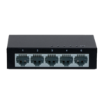 El switch PFS3005-5ET es un conmutador de red no gestionable de 5 puertos Gigabit Ethernet diseñado específicamente para entornos profesionales donde se requiere conectividad de alto rendimiento sin alimentación PoE. Su construcción en carcasa metálica garantiza durabilidad y disipación térmica eficiente, características fundamentales en instalaciones de seguridad que operan de forma continua.