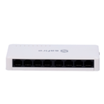 El conmutador incorpora 8 puertos RJ45 autosensibles que negocian automáticamente la velocidad óptima (10, 100 o 1000 Mbps) según el dispositivo conectado. El backplane de conmutación no bloqueante garantiza que el tráfico entre puertos se gestione sin pérdidas, manteniendo la integridad de las transmisiones incluso bajo carga máxima.