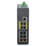 Switch industrial gestionable de 6 puertos Gigabit con tecnología HiPoE (hasta 60W por puerto) y 4 ranuras SFP para fibra óptica. Diseñado para instalaciones de videovigilancia IP, control de accesos y sistemas de seguridad que requieren alimentación y gestión avanzada en entornos industriales. Montaje DIN-Rail con gestión Layer 2 completa.