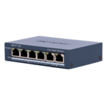El switch gestionable DS-3E1506P-EI de HIKVISION proporciona 4 puertos Gigabit con tecnología PoE para alimentar y conectar cámaras IP, puntos de acceso y dispositivos de red en instalaciones de seguridad profesional. Solución ideal para integradores que necesitan gestión avanzada de red con capacidad de administración remota y configuración VLAN.