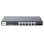 Switch industrial gestionable de 24 puertos Gigabit Ethernet con PoE+ (802.3at) y 4 puertos SFP, diseñado específicamente para infraestructuras de videovigilancia IP profesional. Ofrece 400W de presupuesto PoE total, gestión inteligente mediante VLAN, QoS y monitorización SNMP, garantizando alimentación y conectividad estable para cámaras IP, intercomunicadores y sistemas de seguridad electrónica en entornos industriales exigentes.