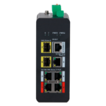 Switch PoE gestionable de 4 puertos Gigabit con tecnología Hi-PoE hasta 120W, montaje en carril DIN y 2 puertos SFP para fibra óptica. Diseñado para instalaciones profesionales de videovigilancia y control de accesos que requieren gestión avanzada de red, con soporte VLAN, RSTP, IGMP Snooping y extensión PoE hasta 250 metros. Proporciona alimentación de hasta 90W por puerto en los dos primeros puertos.
