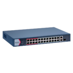 El switch gestionable HIKVISION DS-3E1326P-EI/M integra 24 puertos Gigabit PoE+ y 2 puertos SFP, diseñado específicamente para instalaciones profesionales de videovigilancia IP, control de accesos y sistemas de seguridad electrónica. Con presupuesto PoE de 370W y gestión VLAN avanzada, garantiza alimentación estable y configuración optimizada para cámaras IP, intercomunicadores y dispositivos de red en entornos corporativos e industriales.