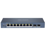 Switch gestionable de 8 puertos Gigabit PoE+ diseñado para instalaciones profesionales de videovigilancia IP y sistemas de seguridad. Ofrece hasta 130W de potencia total PoE, gestión avanzada mediante interfaz web, VLAN, QoS y 2 puertos combo Gigabit/SFP para uplink de fibra óptica. Ideal para integradores que requieren control total sobre redes de cámaras IP y dispositivos PoE.
