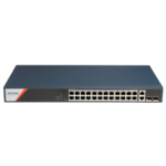 El switch gestionable Hikvision DS-3E1528HP-SI-24P2T2F integra 24 puertos Gigabit PoE+ con presupuesto de potencia de 370W, 2 puertos combo Gigabit y 2 ranuras SFP. Diseñado específicamente para instalaciones de videovigilancia IP y sistemas de seguridad profesionales, permite alimentar cámaras PoE, intercomunicadores y dispositivos de red sin necesidad de fuentes externas.