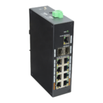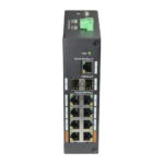 Equipado con 8 puertos RJ45 Gigabit Ethernet, 2 ranuras SFP para conectividad de fibra óptica y 1 puerto RJ45 dedicado para uplink, este switch industrial garantiza flexibilidad absoluta en el diseño de topologías de red. La combinación de puertos de cobre y fibra permite extender las redes más allá de las limitaciones del cableado tradicional, alcanzando distancias superiores en plantas industriales, almacenes logísticos o instalaciones de seguridad distribuidas.