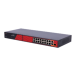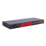 Switch PoE no gestionable de 14 puertos Gigabit Ethernet con 2 puertos SFP, diseñado para instalaciones de videovigilancia IP y sistemas de seguridad que requieren alimentación centralizada. Proporciona hasta 250W de potencia PoE total, ideal para alimentar cámaras IP, puntos de acceso inalámbricos y dispositivos de control de acceso en una única infraestructura de red.