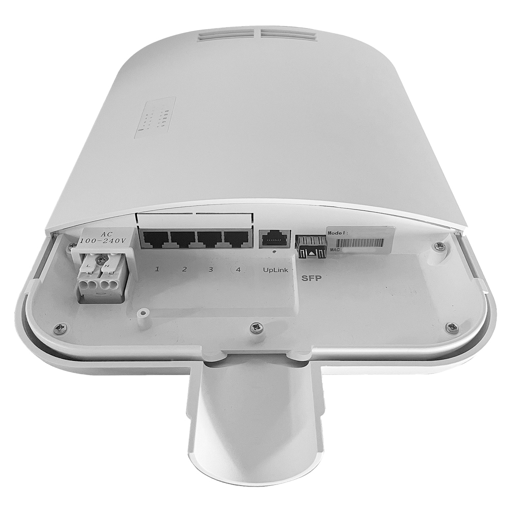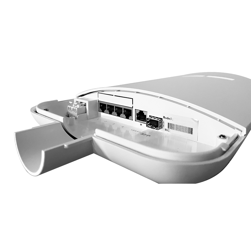 - (1~4) puertos RJ45 100/1000 Mbps + 1 Uplink RJ45 Gigabit Port + 1 Uplink SFP Port