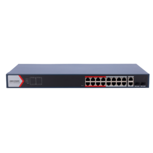 - 16 puertos RJ45 10/100 Mbps PoE + 2 puertos Gigabit RJ45/SFP combo