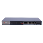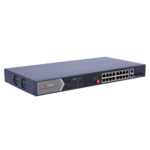 El switch HIKVISION DS-3E0520HP-E incorpora 16 puertos PoE Gigabit que cumplen con los estándares IEEE 802.3af/at, garantizando compatibilidad universal con equipamiento de múltiples fabricantes. Además, incluye 2 puertos Gigabit adicionales y conectividad SFP para enlaces de fibra óptica, permitiendo extensiones de red de largo alcance en instalaciones distribuidas o conexiones troncales de alta velocidad.
