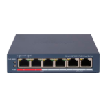 El switch gestionable HIKVISION DS-3E1106P-EI/M integra 4 puertos Gigabit PoE+ y 2 puertos uplink, ideal para instaladores profesionales que requieren alimentación y conectividad centralizada en sistemas de videovigilancia IP y control de accesos. Ofrece gestión avanzada mediante interfaz web, capacidad de hasta 58W de potencia PoE total y funciones de seguridad de red que garantizan instalaciones robustas y escalables.