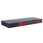 Switch profesional no gestionable con 24 puertos Gigabit PoE+ (22 puertos PoE+ estándar y 2 puertos Hi-PoE de 60W), 2 uplink SFP y 2 uplink RJ45 Gigabit. Presupuesto total de 300W PoE, función PoE Watchdog para reinicio automático de dispositivos y alcance extendido hasta 250 metros. Diseño robusto ideal para instalaciones profesionales de videovigilancia IP, control de accesos y redes de seguridad exigentes.