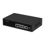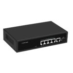 Switch no gestionable de 4 puertos Gigabit PoE+ con capacidad de 30W por puerto y 1 uplink SFP 10G. Diseñado específicamente para instalaciones de videovigilancia IP, control de accesos y sistemas de seguridad que requieren alimentación PoE estable con función Watchdog integrada.