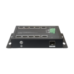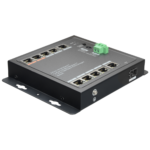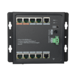 Switch PoE no gestionable de 8 puertos Gigabit con puerto SFP y montaje DIN, diseñado para instalaciones profesionales de videovigilancia IP y sistemas de control de accesos. Proporciona alimentación HiPoE extendida para dispositivos de alta potencia como cámaras PTZ, lectores biométricos y equipos de intercomunicación IP.
