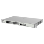 La arquitectura del RG-NBS3200-24GT4XS-P-V2 está diseñada para ofrecer rendimiento empresarial con switching no bloqueante y capacidad de conmutación que garantiza throughput completo en todos los puertos simultáneamente. Los cuatro puertos SFP+ de 10 Gigabit permiten crear enlaces de alta velocidad hacia el núcleo de red o hacia otros switches de distribución, eliminando cuellos de botella en instalaciones con alto tráfico de datos.
