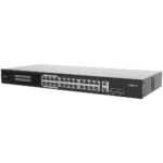 Switch gestionable de 24 puertos Gigabit Ethernet sin PoE de Uniview, diseñado para infraestructuras de red profesionales en sistemas de videovigilancia IP y seguridad electrónica. Incorpora 1 puerto SFP para conexiones de fibra óptica y funciones avanzadas de gestión VLAN, QoS, IGMP Snooping y control de ancho de banda, garantizando rendimiento óptimo en instalaciones de seguridad críticas.