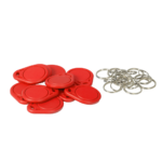 Llavero de proximidad RFID TAG-RFID-WR-R con tecnología de radiofrecuencia de 125 kHz, diseñado para sistemas profesionales de control de accesos. Compatible con lectores estándar EM4100 y formatos EM Marin, garantiza identificación rápida y segura en instalaciones comerciales, industriales y residenciales.