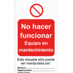 Tarjeta de bloqueo de No hacer funcionar. Material PVC 0,3 mm. Medidas 200×100 mm.