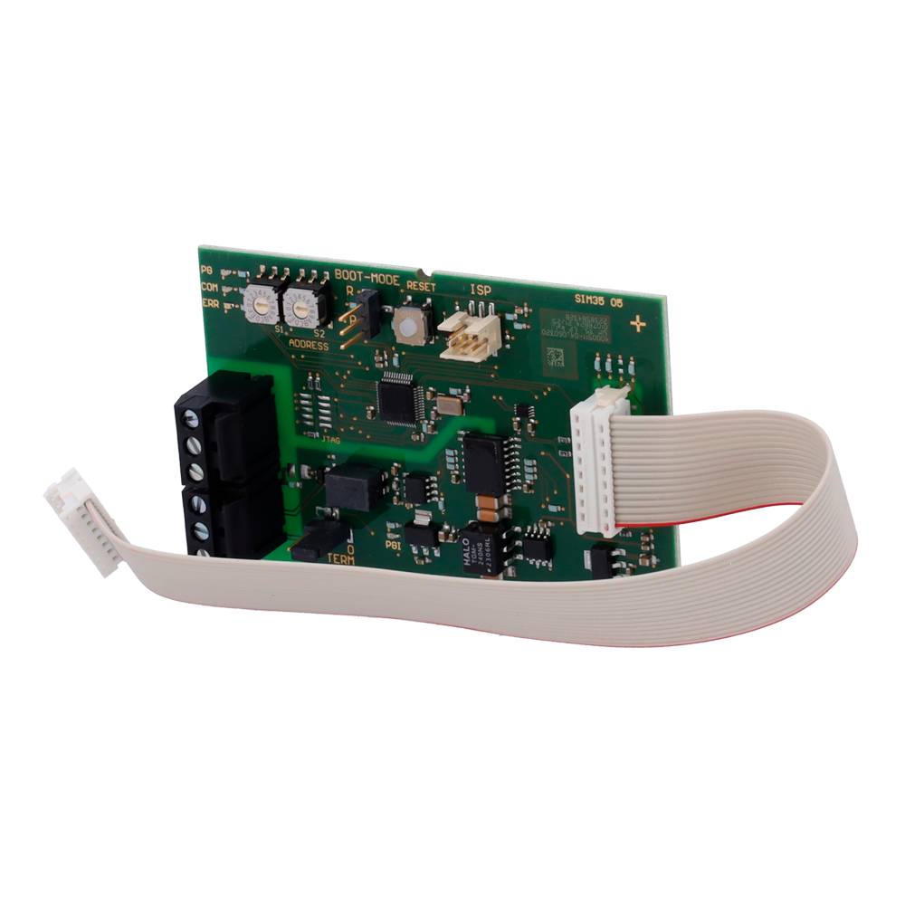 SIM35 es una tarjeta de red para conectar múltiples detectores de la serie ASD y ADW de Securiton en red mediante un bus de comunicación RS485. Cuenta con aislamiento galvánico que protege la integridad de la comunicación y garantiza la fiabilidad del sistema. Ideal para integraciones en instalaciones de protección contra incendios de gran escala con supervisión centralizada.