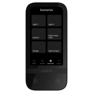 - Teclado cableado con pantalla IPS táctil y lector RFID de tarjetas/tags Ajax